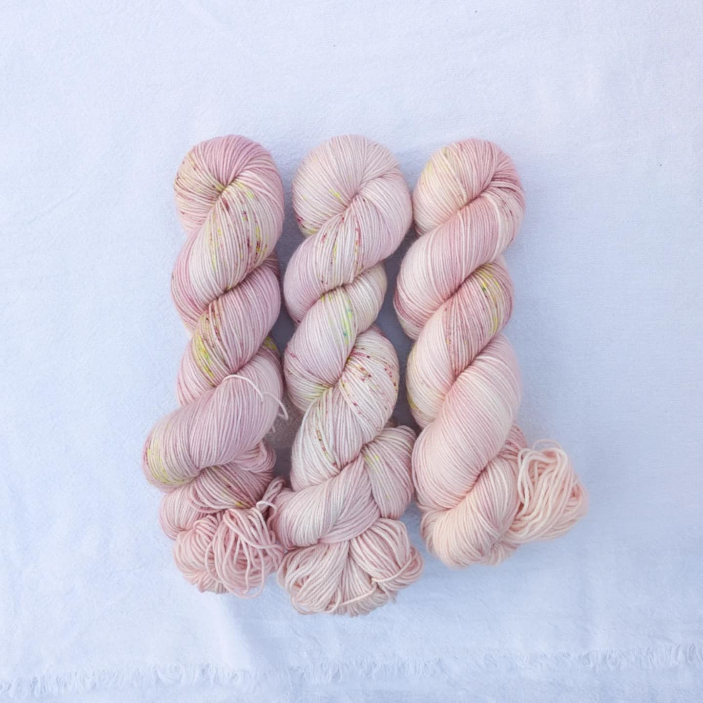 The yarns are shown in the order from: Classic Sock → Silk Sock → Merino Fingering.